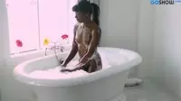The two ebony beauties find themselves completely entwined in an intimate bath play, where the water is steamy hot, and wet from the bubbling foam.As their ebony skin glows with excitement, they explore their desires through soft caresses, playing with one another's supple bodies above the water.Their heaving bosoms sway gently as eager hands graze over their curves, causing their erect nipples to dance beneath the swirling foam of the bathtub.The two lesbian women are enraptured by each other's charm as they touch and caress the hidden parts of their bodies, focusing intently on the clitorises that lead to mutually satisfying climaxes.They express their fascination with one another through charming desire-filled gestures and passionate fingering.The water, soaked in a mixture of both their fluids, begins to take on a seductive quality as it fills with an aura of charm and desire.Submerging themselves underwater, they experience new levels of erotic bliss through their drowning kisses and passionate embraces.As the foam around them grows, their passion ignites into an inferno that threatens to break the walls of the bathtub.Their bodies intertwined like vines climbing a tree, the ebony beauties create unforgettable memories in this steamy bathroom.Culminating in an intense orgasm that shakes the very foundations of their passion-filled space, the women collapse into each other's arms, drenched in the foam and essence of their love-making.The water, now filled with remnants of their intimate encounters, glistens under the soft light as they gaze at one another, satisfied and sated by the charm and allure of their bath play session.The two ebony beauties have turned this simple act of taking a bath into an unforgettable, sensual experience for one another, showcasing their insatiable hunger and desire for each other, all while bathed in the soft light of their charm and fascination.